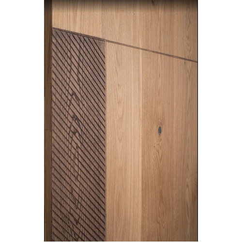 Каждое дверное полотно создается с использованием технологии DSW и изготавливается из массива лиственных пород дерева. Каркас и ламели выполнены из массива дуба, а подложка - из ольхи, что обеспечивает прочность и минимизирует вероятность деформации. Поверхность дверей покрыта ультраматовым лаком на водной основе, который подчеркивает текстуру дуба, придавая рисунку глубину и красоту, сравнимую с произведениями масляной живописи.